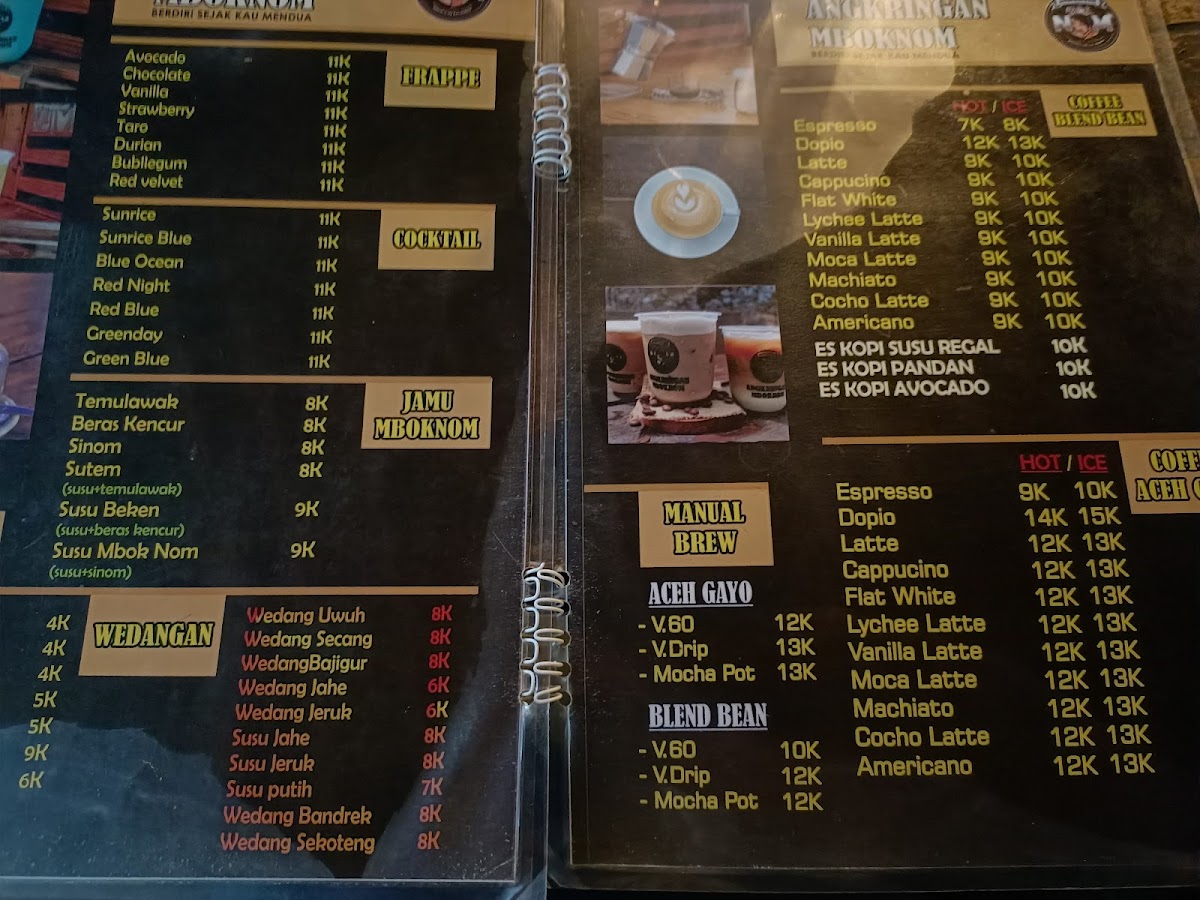 What sets Angkringan Mbok Nom apart is its affordable pricing, ensuring a budget-friendly experience without compromising on quality. Guests have praised the diverse coffee selection, featuring beans sourced from various regions of Indonesia, paired with the occasional live music from local young talents, creating an engaging vibe.